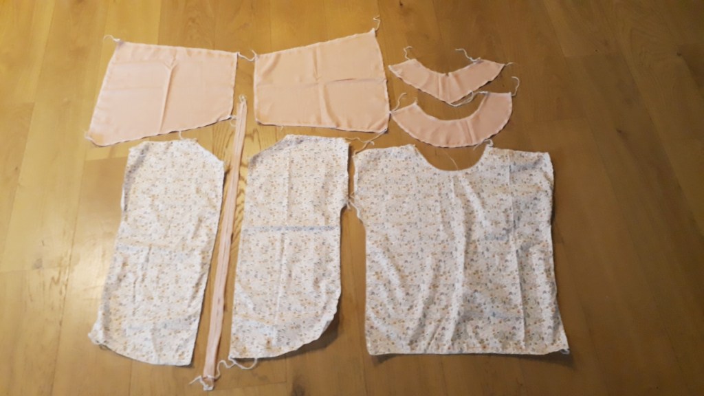De mon côté, j’ai opté pour la version B (pour les tissus non extensibles) avec parmenture. J’avais un tissu liberty qui me permettait de faire le devant et les dos (mais pas toutes les parties dans le droit fil j’avoue, mais vous me pardonnerez vu que le but final c’est ne pas jeter 😉 ). Et un bout de lin rose dont il ne me restait qu’une longueur de laize sur 10 cm. J’ai décidé de l’utiliser pour faire une patte de boutonnage dans le dos puis les revers de manches.