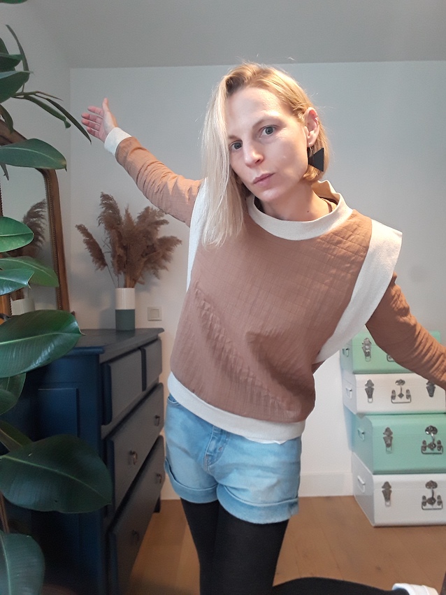 Me voilà donc bien avec un sweat à moitié monté et une seule épaulette 😦