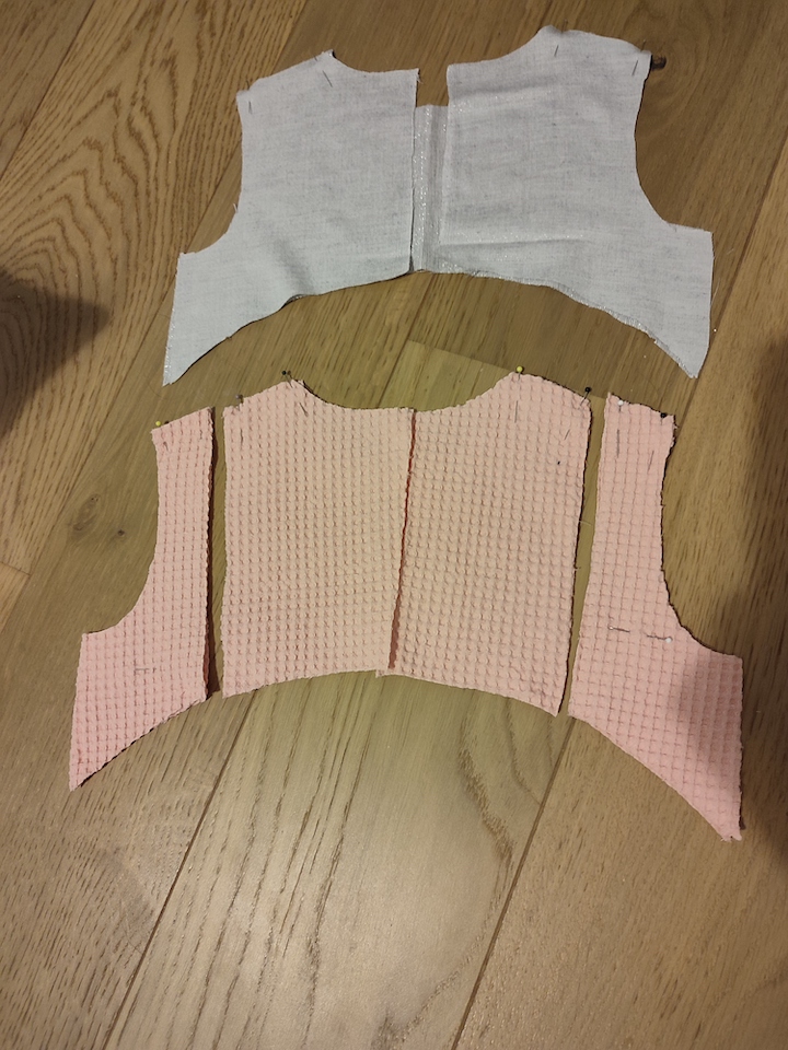Pour la doublure, j’ai pris des vieilles chutes de tissu qu’il me restait. Comme il n’en faut pas beaucoup c’est parfait. J’ai du coup choisi un tissu très fin pour compenser avec l’épaisseur du tissu principal.